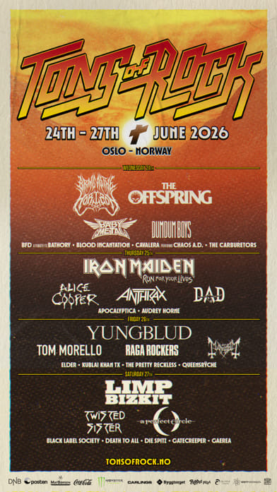 Hele spekteret av rock er representert når Tons of Rock i dag slipper sitt største artistprogram noensinne. På toppen troner Iron Maiden, Bring Me the Horizon og Limp Bizkit – tre av de mest innflytelsesrike og populære bandene i verden akkurat nå. Sammen med legender som Alice Cooper og Twisted Sister får publikum oppleve et program der generasjoner møtes og rockens mange uttrykk feires.»