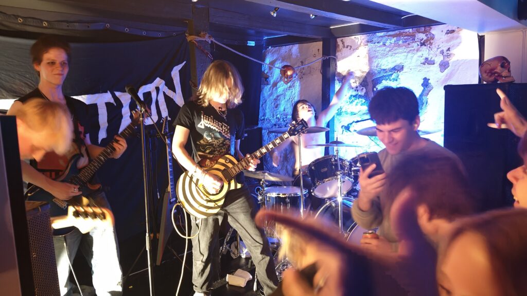 Konserten var litt spredt for meg, stilmessig hadde de cover på alt fra Dum Dum Boys til Sabbath, og Metallica. Eget materiale fikk jeg ikke helt oversikt over, men låten Fake News var superbra, med følelse, innlevelse og en tung og bra gnist. Om originalmaterialet er såpass, og det synges på norsk, har de mulighet til å bygge seg opp og finne et publikum. Og når de kjørte For Whom The Bell Tolls fikk man perspektiv, når man selv stod på en scene for 36 år siden og spilte samme låt på en scene i Kristiansand. Sprekt når musikk har en så god levetid at de yngre bruker tid på musikken vi vokste opp med i vår samtid.