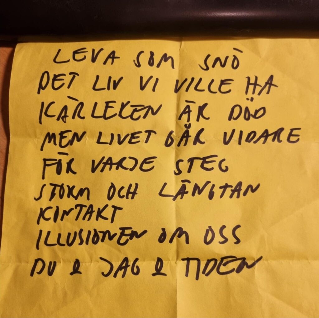 En annen ting som virkelig var bra, var denne filmmonoloen som gikk før og etter låtene, det virker som det er et trademark hos bandet. Jeg elsket det, og svensk er et så utrolig melodisk og vakkert språk. Sjekk denne låten for å høre et eksempel på monologen: